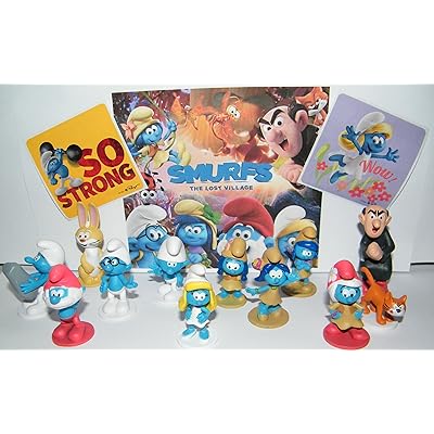 Smurfs and the Lost Village Deluxe Figure Toy Set of 14 with Figures and Stickers Featuring the Classic Smurfs and Many New Smurf Characters including Bunny Bucky