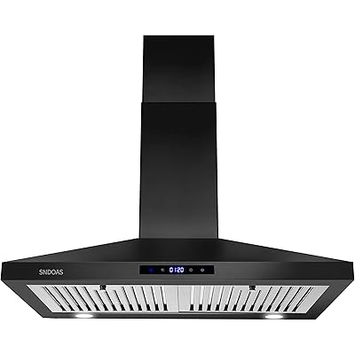 SNDOAS Black Range Hood 30 Inch,Stainless Steel Wall Mounted Kitchen Hood with Touch Controls, DuctedDuctless Convertible,Chimney-Style Stove Hood Vent for Kitchen,Baffle Filters,Black Painted Finish