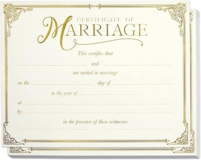 Juvale Marriage Certificate - 11 x 8.5 Inches, Ivory, 48-Pack - Blank Certificates with Gold Foil Edges & Lettering